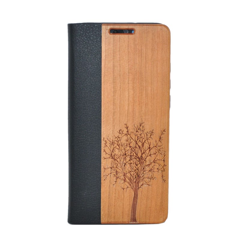 Kirschholz Klapphülle Huawei P20 - Lebensblume