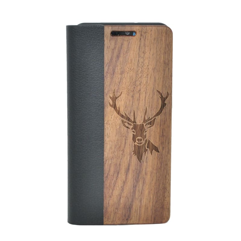 Nussholz Klapphülle Huawei P20 - Hirsch