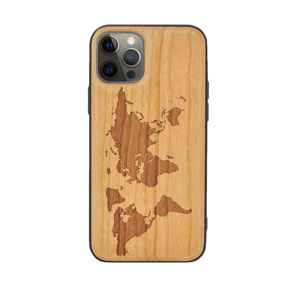 Kirschholz Handyhülle iPhone 11 Pro - Weltkarte