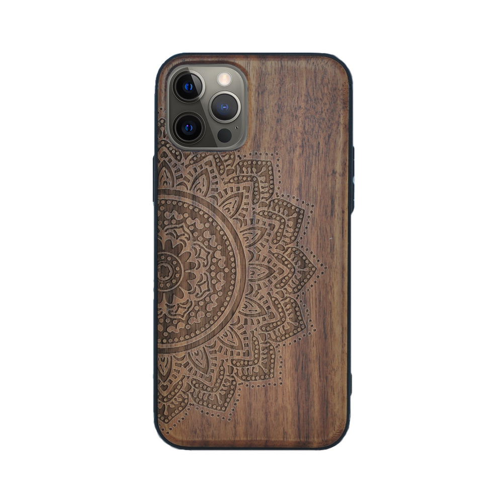 Nussholz Handyhülle iPhone 12 / 12 Pro - Mandala