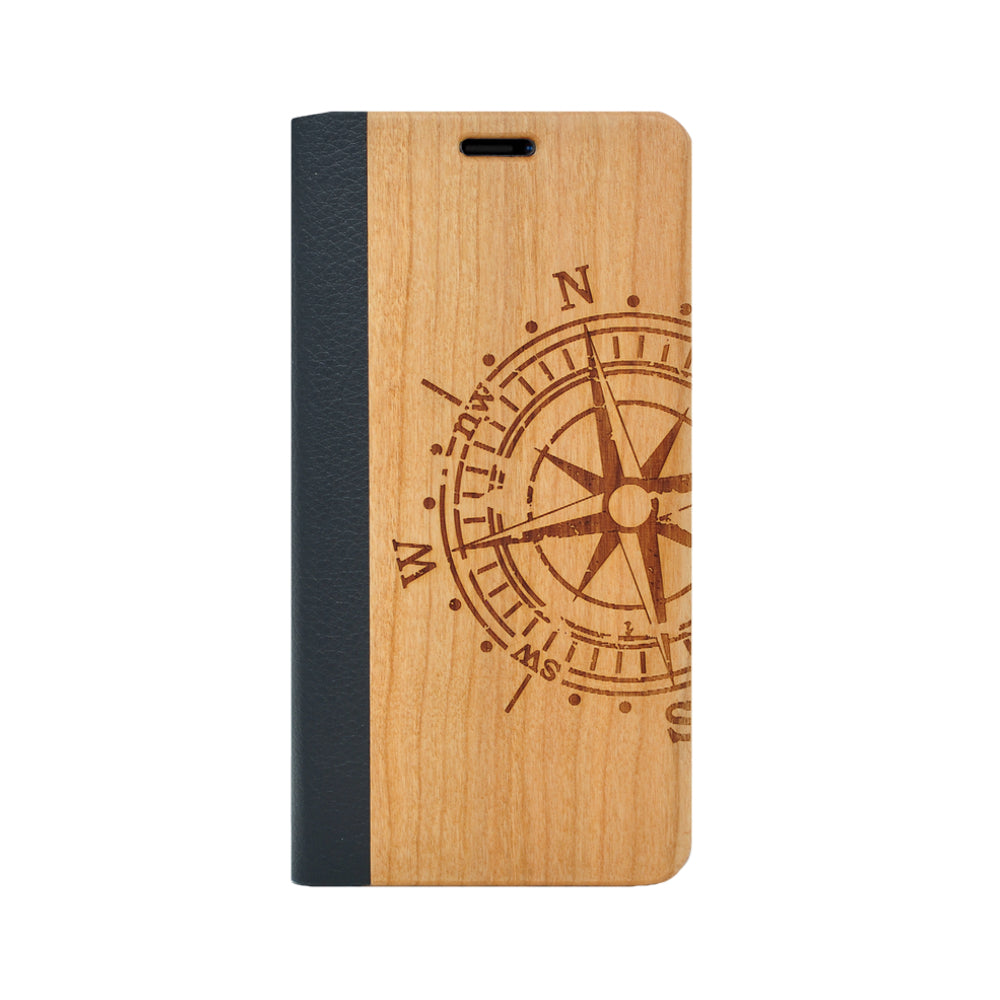 Kirschholz Klapphülle iPhone 12 / 12 Pro - Kompass
