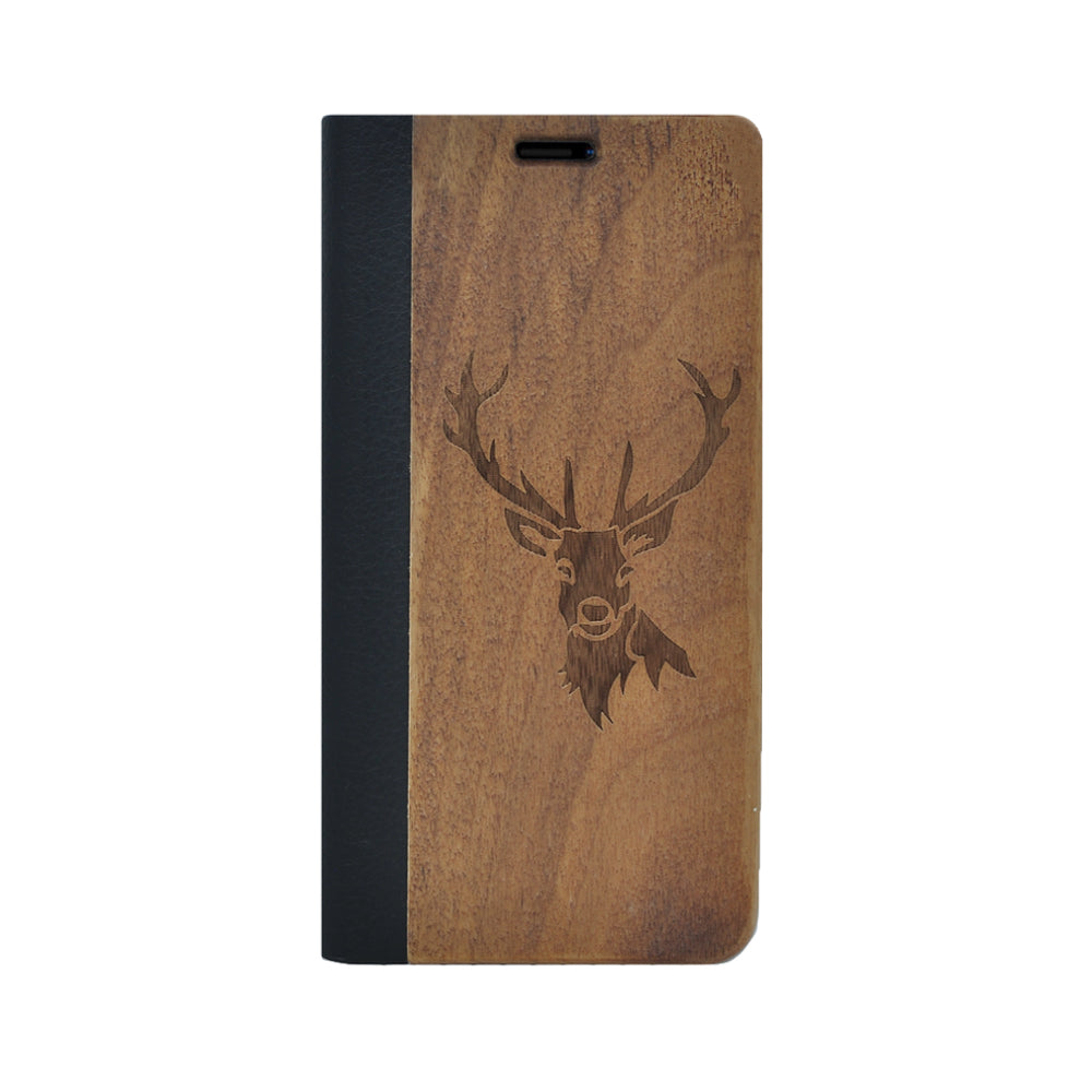 Nussholz Klapphülle iPhone 12 / 12 Pro - Hirsch