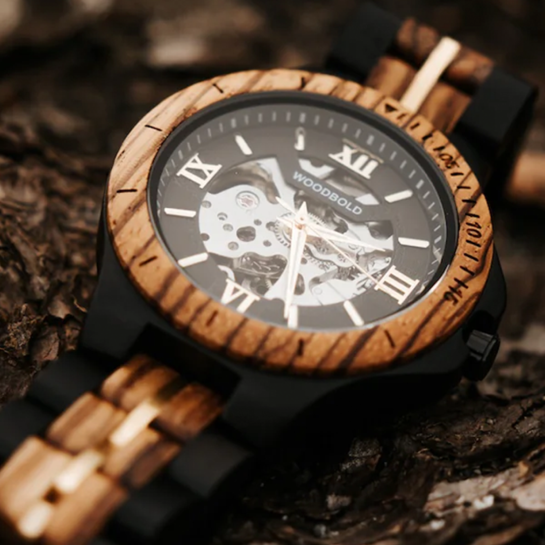 Keine Uhr wie die andere: Durch die einzigartige Maserung des Holzes wird jede WoodBold Uhr zu einem Einzelstück mit Charakter – natürlich, stilvoll und individuell.