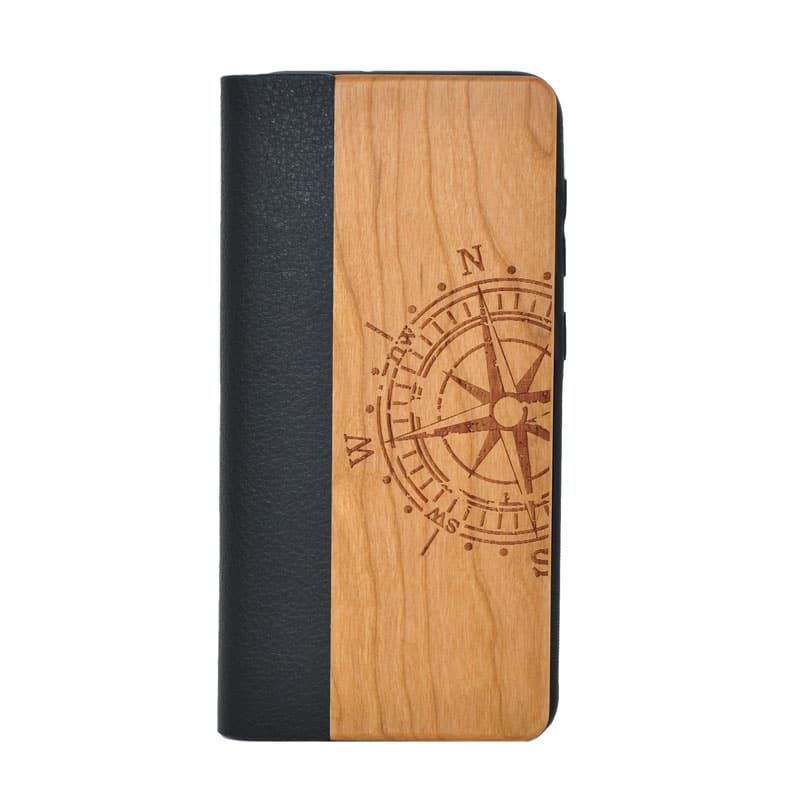 Cherry wood flip case for Huawei P20 - Compass