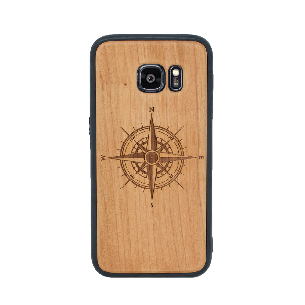 Cherry wood phone case for Samsung Galaxy S7 Edge - Compass