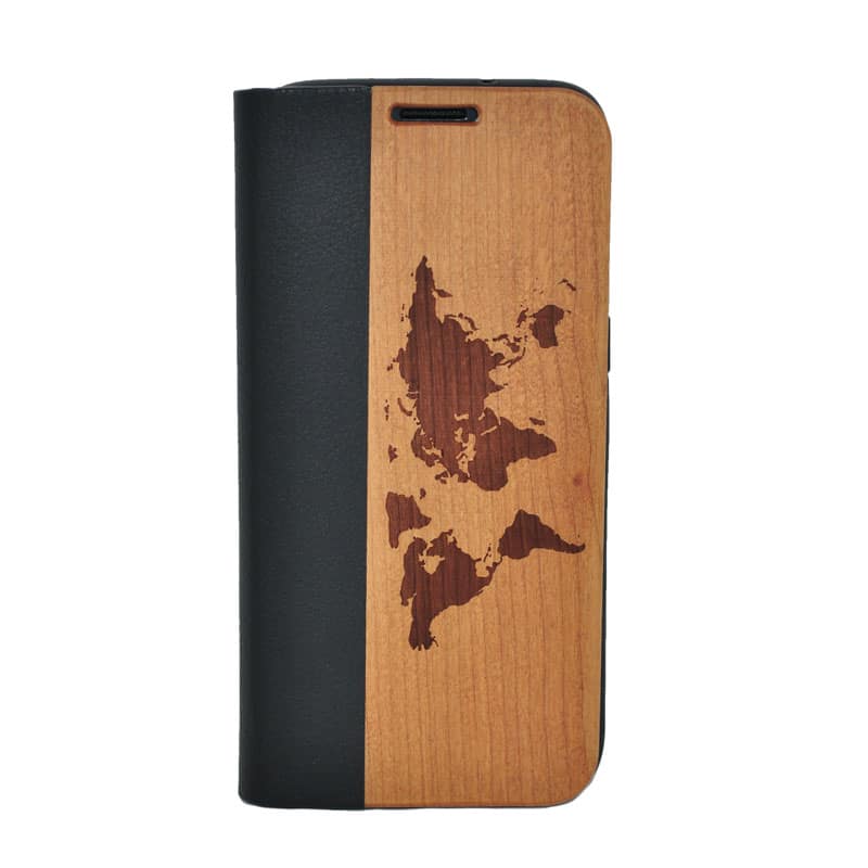 Cherry wood flip case for Samsung Galaxy S7 Edge - World